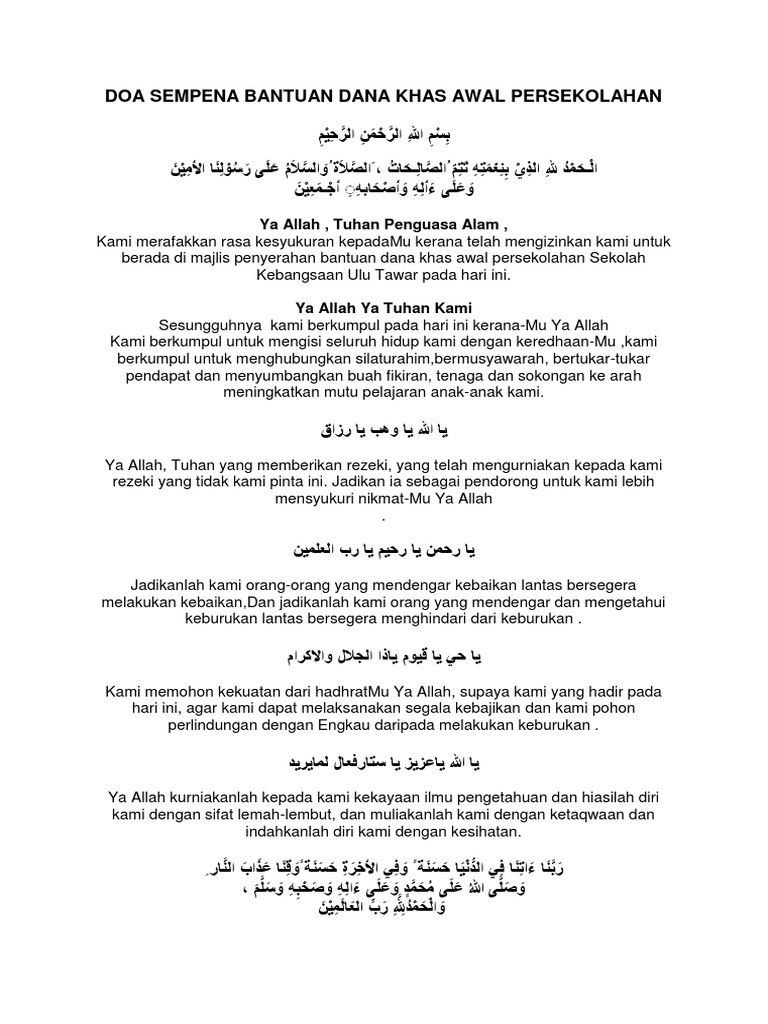 Doa Sempena Bantuan Dana Khas Awal Persekolahan Pdf